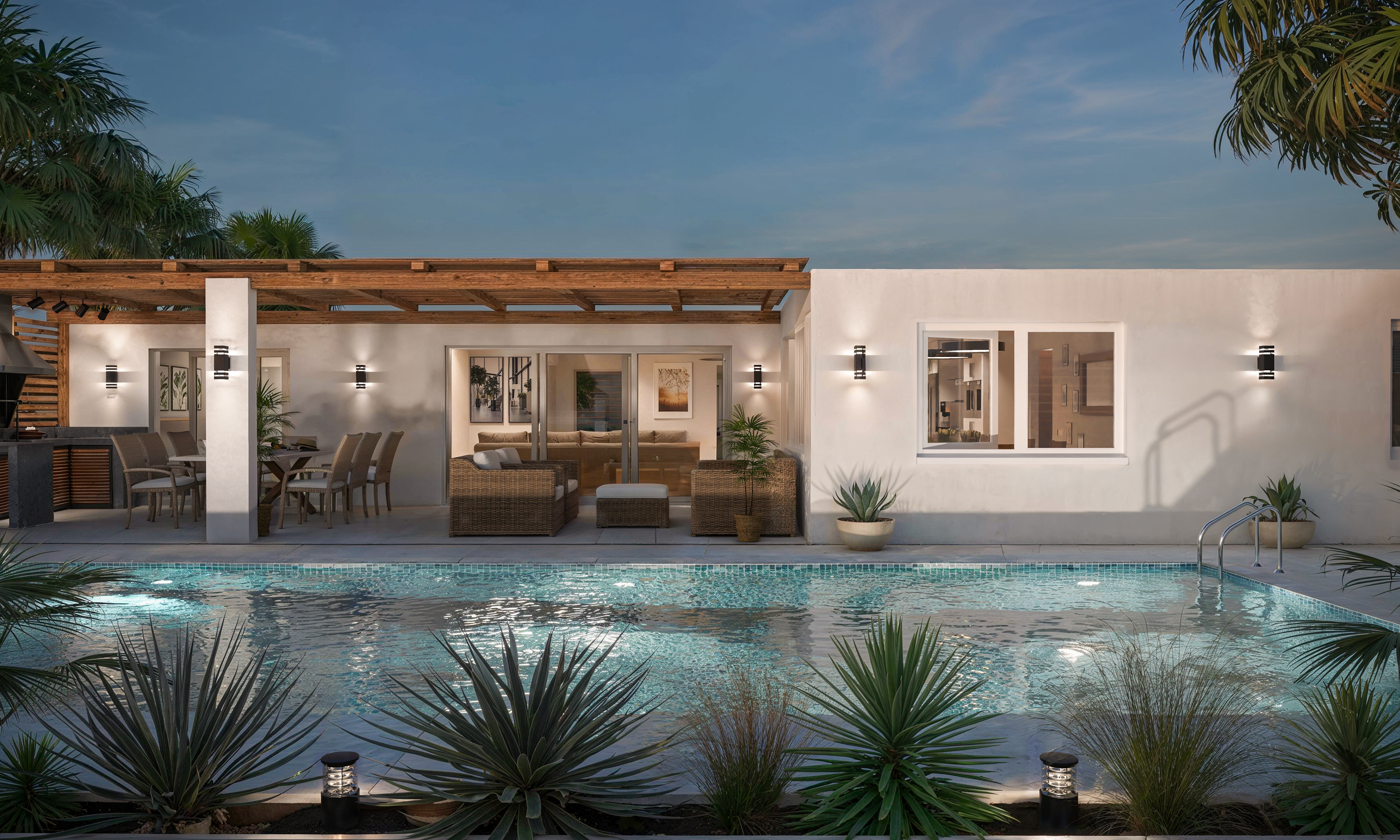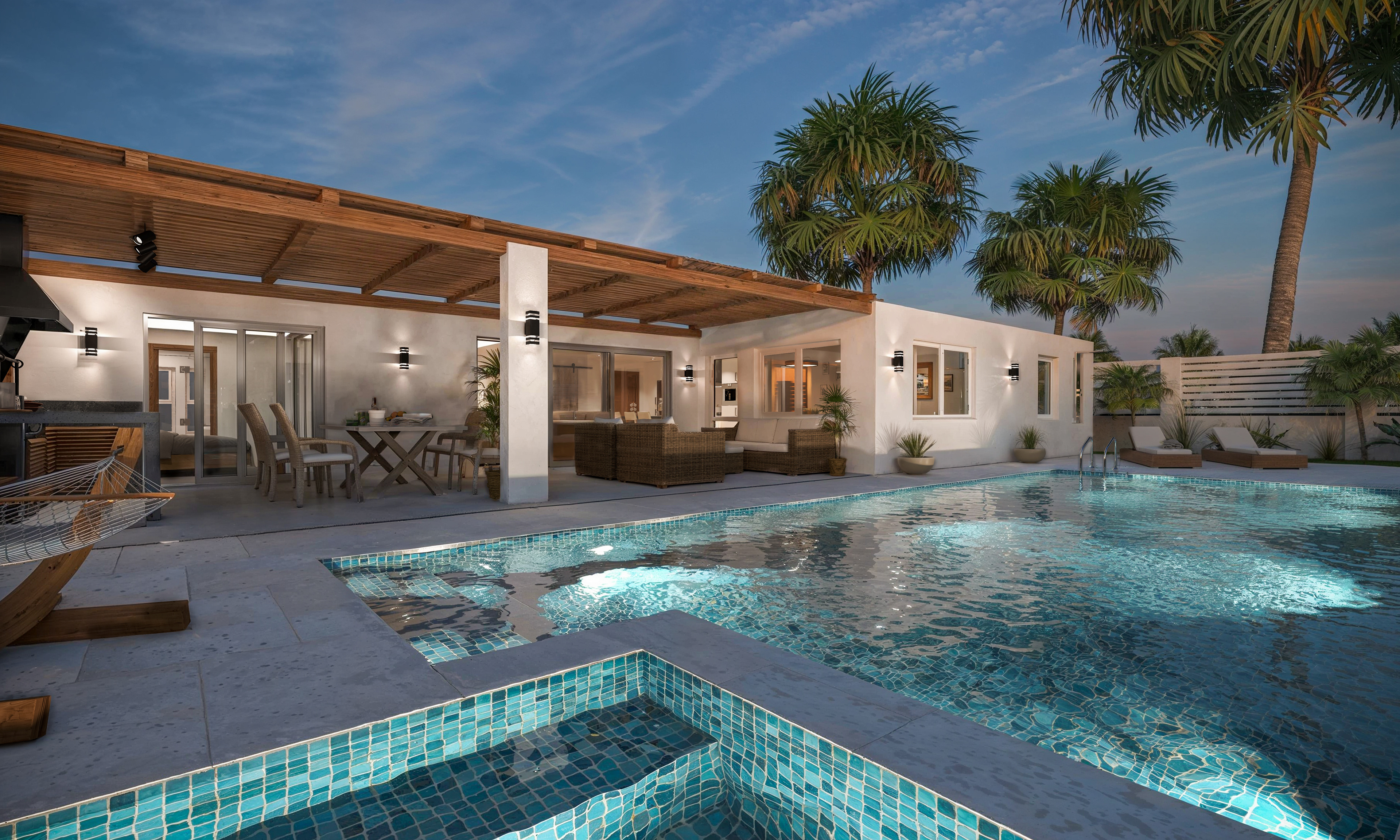 Design concept images of a spacious, modern Mediterranean style villa in Mallorca, Spain. Giving the client a feel for the property before constrcution begins.